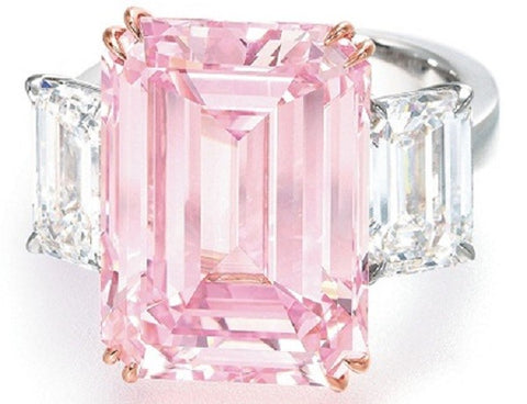 Diamanty sú veľmi drahé, ale ešte drahšie sú farebné diamanty. Tento perfektný rúžový diamantový prsteň získal svoje meno vďaka jeho dokonalému rúžovému zafarbeniu. S pravouhlým rezom, váži 14,23 karátov a na každej strane je lemovaný rovnakým tvarom bezchybných diamantov s hmotnosťou 1,73 a 1,67-ct. Aby to bolo ešte dokonalejšie, tri diamanty sú umiestnené na 18-karátovom rúžovom a bielom zlatom prsteni.