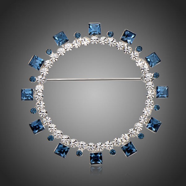 Kruhová brošňa vykladaná modrými a čírymi krištáľmi vyzdvihne outfit.. Zachováva si dlhotrvajúci lesk a jas. Antialergické.