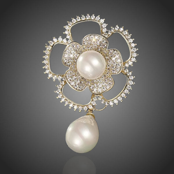 Krásna dámska brošňa s kvetom vykladaná čírymi zirkónmi so shell perlami sa stane elegantným doplnkom. Zachováva si dlhotrvajúci lesk a jas. Antialergické.