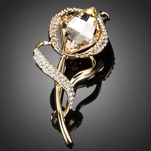 Čarovná kvetinová brošňa s krištáľom citrínovej farby. Okolie a lístok je vyzdvihnutý mnohými čírymi krištáľmi. Zachováva si dlhotrvajúci lesk a jas. Antialergické.
