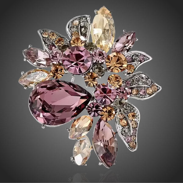 Luxusná nádherná brošňa s dominantným ružovofialovým krištáľom doplnená v záhone záhrady farebnými krištáľmi sa stane krásnym doplnkom. Zachováva si dlhotrvajúci lesk a jas. Antialergické.