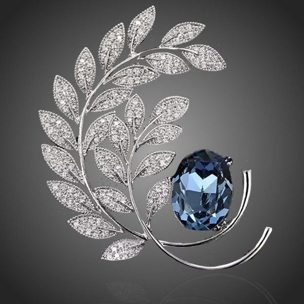 Luxusná nádherná brošňa s lístkami vykladaná stovkami žiarivých čírych zikónov doplnená dominantným ružovo-fialovým krištáľom. Zachováva si dlhotrvajúci lesk a jas. Antialergické.