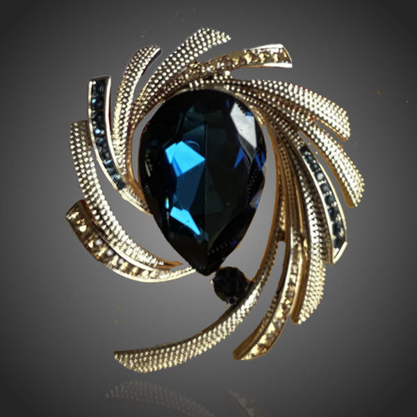 Luxusná nádherná brošňa s dominantným modrým krištáľom v kvapke doplnená drobnými oranžovo modrými v zaujímavom točenom efektnom tvare. Zachováva si dlhotrvajúci lesk a jas. Antialergické.