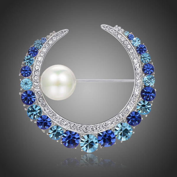 Krásna brošňa so Swarovski perlou a modrými krištáľmi zažiari na saku, či blúzke. Zachováva si dlhotrvajúci lesk a jas. Antialergické.