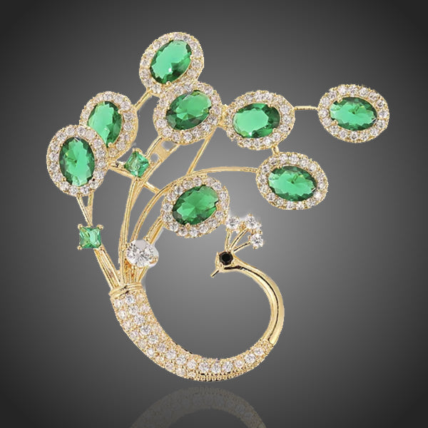 Brošňa páv so zelenými zirkónmi Pavialetta