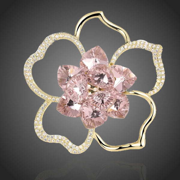 Krásna dámska brošňa s kvetom s jemno ružovými žiarivými krištáľmi doplnená čírymi krištáľmi na saku, či blúzke zažiari.. Zachováva si dlhotrvajúci lesk a jas. Antialergické.