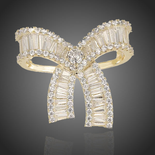 Nádherná brošňa v zlatom šate v tvare mašličky so stovkami žiariacich zirkónov sa stane Vašim obľúbeným doplnkom. Zachováva si dlhotrvajúci lesk a jas. Antialergické.