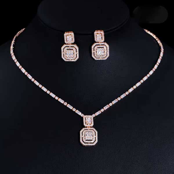 Nádherný jemný žiarivý set s mnohými čírymi zirkónmi s diamantovým odleskom sa stane Vašim obĺúbeným doplnkom. Vďaka kvalitnej galvanizácii 3 vrstvou ružového zlata si zachováva dlhotrvajúci lesk a jas. Bez obsahu niklu, olova, kadmia. Antialergické.