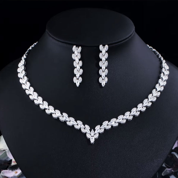 Elegatný set s jemným motívom v zlatom prevedení vykladaný mohými čírymi zirkónmi s diamantovým odleskom v ladnej zvonkohre vyzdvihne outfit. Krásny spoločenský alebo svadobný set. Vďaka kvalitnej galvanizácii 3 vrstvou bielehozlata si zachováva dlhotrvajúci lesk a jas. Bez obsahu niklu, olova, kadmia. Antialergické.