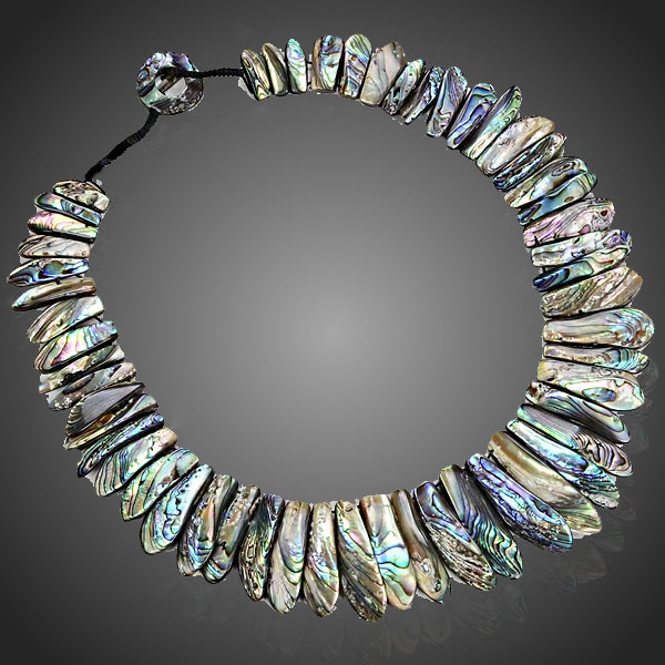 Exkluzívny neprehliadnuteľný náhrdelník s nádhernou farebnou paletou dúhy prírodných Abalonských mušli nezostane bez povšimnutia. Každý kus je ručne vyrobený originál. Pre jedinečnú dámu.