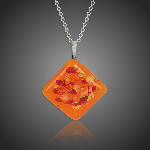 Originálny náhrdelník s oranžovým maľovaným umeleckým odolného sklom vyzdvihne dekolt.