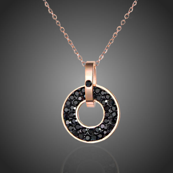 Elegantný náhrdelník s kruhovým príveskom so žiarivými čiernymi krištáľmi. Zachováva si dlhotrvajúci lesk a jas. Antialergické.