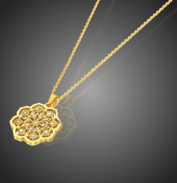 Krásny náhrdelník s motívom kvetu vykladaný čírymi krištáľmi v dekolte zažiari.Zachováva si dlhotrvajúci lesk a jas. Antialergické.