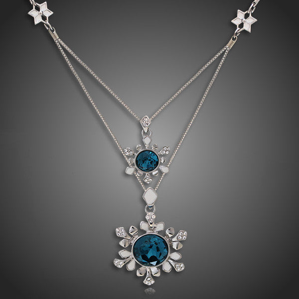 Nádherný náhrdelník s dvojretiazkou doplnený kvetmi s oceánovo modrými krištáľmi. Drobné kvietky z bieleho smaltu v spojoch dvoch retiazok dotvárajú celkový efekt. Zachováva si dlhotrvajúci lesk a jas. Antialergické. Kolekcia Georgia sa vyznačuje spájaním rôznych techník - krištále, farby, smalt, tepané a gravírované prvky. Trendy kúsky pre výnimočné ženy.