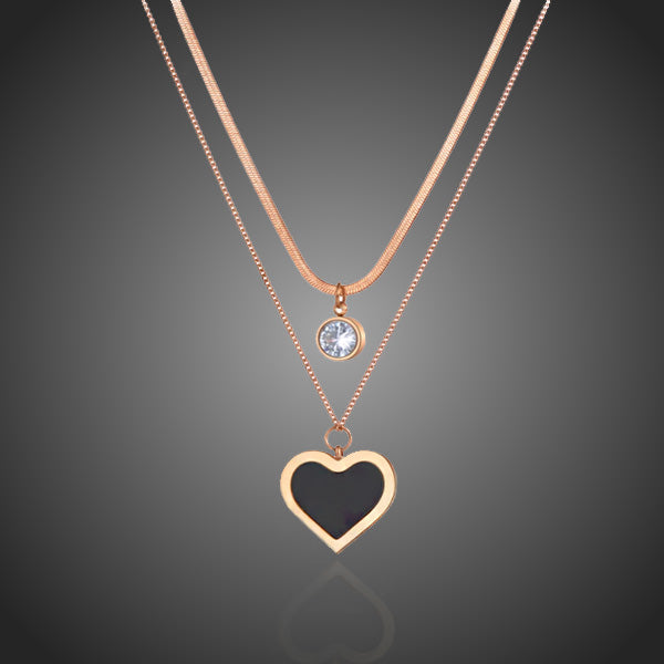 Zaujimavý srdcový náhrdelník s dvojretiazkou v kombinácii s čírym krištáľom. Zachováva si dlhotrvajúci lesk a jas. Antialergické.