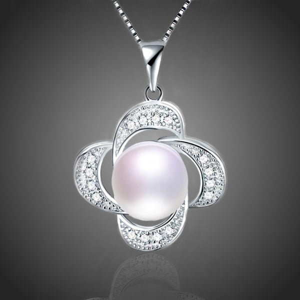 Elegantný náhrdelník so štvorlístkom v kombinácii s bielou riečnou perlou a zirkónmi s použitím špeciálnej techniky micropave. Vďaka galvanizácii platinou si zachováva dlhotrvajúci lesk a jas. Bez obsahu niklu, olova, kadmia. Antialergické.