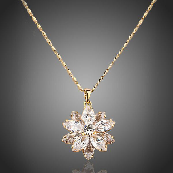 Krásny jemný náhrdelník s čírymi zirkónmi v tvare kvetu vyzdvihne Váš dekolt. Zachováva si dlhotrvajúci lesk a jas. Bez obsahu niklu, olova, kadmia. Antialergické.