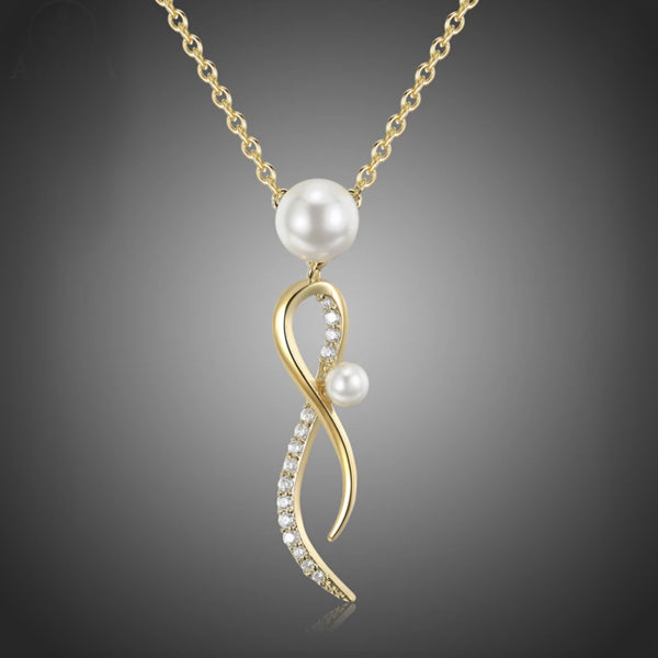 Krásny elegantný náhrdelník so zaujímavým príveskom s krištáľmi a perlou vynikne v dekolte. Zachováva si dlhotrvajúci lesk a jas. Bez obsahu niklu, olova, kadmia. Antialergické.