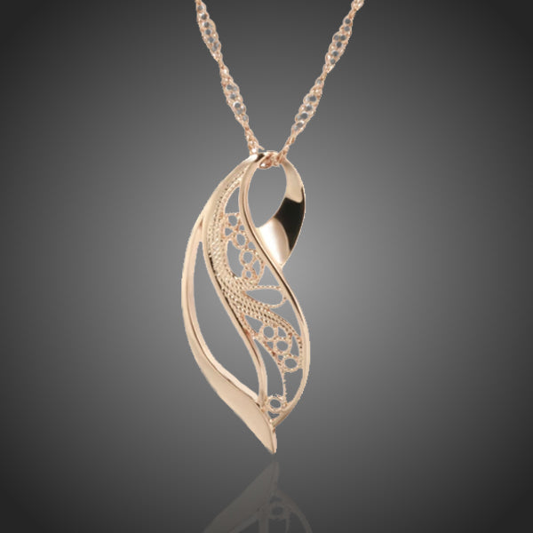 Krásny dámsky náhrdelník s motívom lístku s vyrezavanými detailami vynikne v dekolte. Zachováva si dlhotrvajúci lesk a jas. Bez obsahu niklu, olova, kadmia. Antialergické.