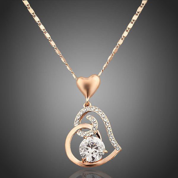 Romantický náhrdelník s príveskom srdca s čírymi krištáľmi v jemnom a sviežom prevedení. Zachováva si dlhotrvajúci lesk a jas. Bez obsahu niklu, olova, kadmia. Antialergické..