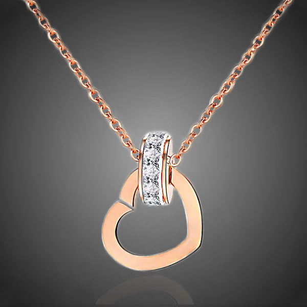 Krásny srdcový náhrdelník s efektným krištáľovým krúžkom. Zachováva si dlhotrvajúci lesk a jas. Antialergické.