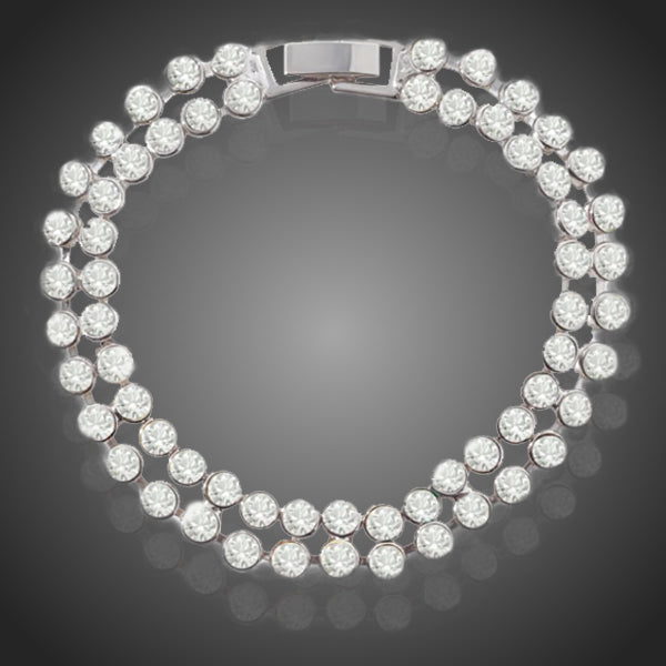 Krásny žiarivý dvojradový náramok doplnený čírymi krištáľmi s diamantovým odleskom na ruke zažiari. Vďaka galvanziácii 3 vrstvou zlata bieleho zlata 18K si zachováva si dlhotrvajúci lesk a jas.