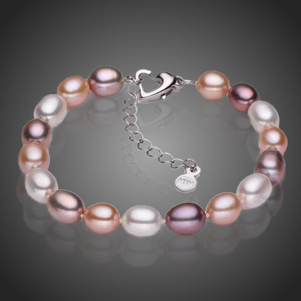 Krásny náramok z bielych, ružových a tmavoružových perál vyzdvihne Vašu rúčku. Zapínanie si vďaka galvanizáciim platinou zachováva dlhotrvajúci lesk a jas. Antialergické.