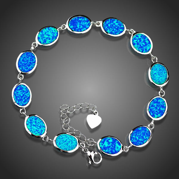 Elegantný náramok s fire opálom v oválnom tvare s očarujúcou žiarou modrej. Vďaka galvanizácii si zachováva dlhotrvajúci lesk a jas. Antialergické.