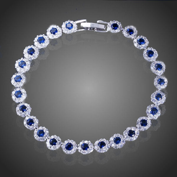 Elegantný krásny náramok s modrými a čírymi žiarivými zirkónmi s diamantovým odleskom na Vašej ruke zažiari. Vďaka kvalitnej galavnizácii 3 vrstvou bieleho zlata si zachováva si dlhotrvajúci lesk a jas. Antialergické.