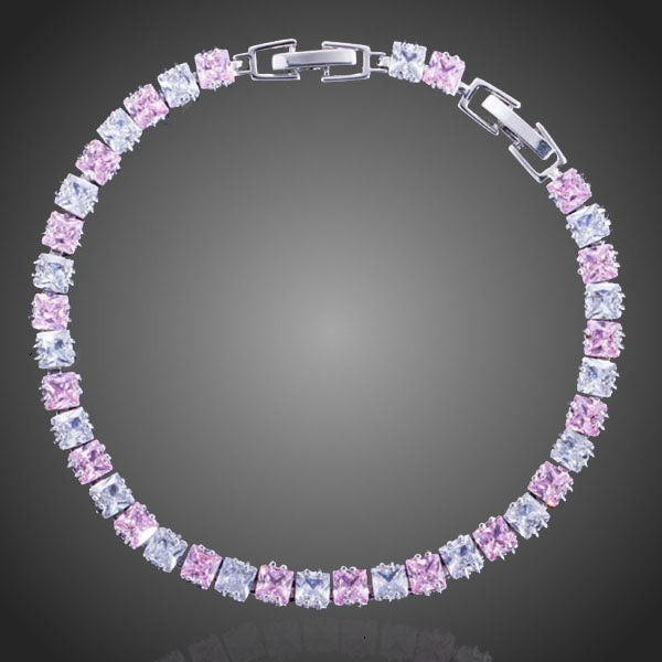 Jemný elegantný náramok s ružovými a čírymi zirkónmi rozjasní Vašu rúčku. Precízne vsadené zirkóny očaria svojím žiarivým lieskom. Vďaka kvalitnej galavnizácii 3 bieleho bieleho zlata si zachováva si dlhotrvajúci lesk a jas. Bez obsahu niklu, olova, kadmia. Antialergické.