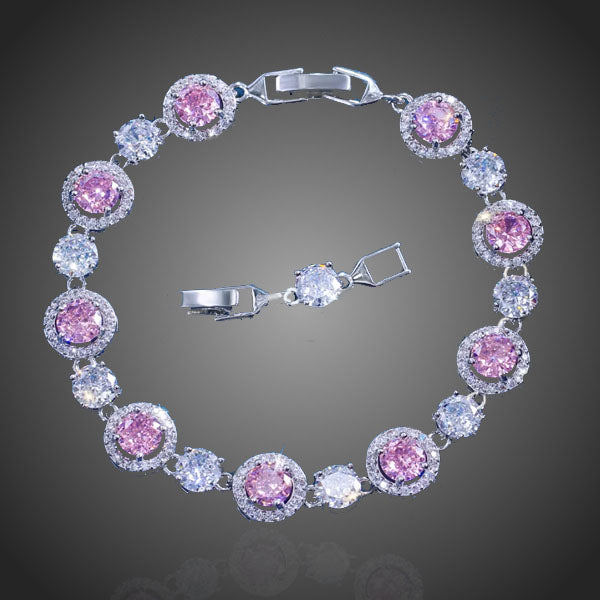 Krásny náramok s ružovými zirkónmi je dokonalým doplnkom pre každú ženu, ktorá miluje eleganciu ružovej a nadčasový lesk. Precízne vsadené ružové zirkóny očaria svojím žiarivým odtieňom. Vďaka kvalitnej galavnizácii 3 bieleho bieleho zlata si zachováva si dlhotrvajúci lesk a jas. Bez obsahu niklu, olova, kadmia. Antialergické.