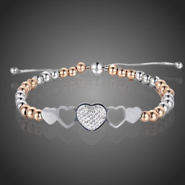 Krásny dámsky náramok z chirurgickej ocele s akcentom srdca s krištáľmi a okolitých srdiečok sa stane milým doplnkom. uchváti. Zachováva si dlhotrvajúci lesk a jas. Antialergické.