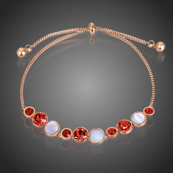 Krásny náramok z chirurgickej ocele s červenými žiarivými krištáľmi doplnený bielymi lastúrami. Zachováva si dlhotrvajúci lesk a jas. Antialergické.