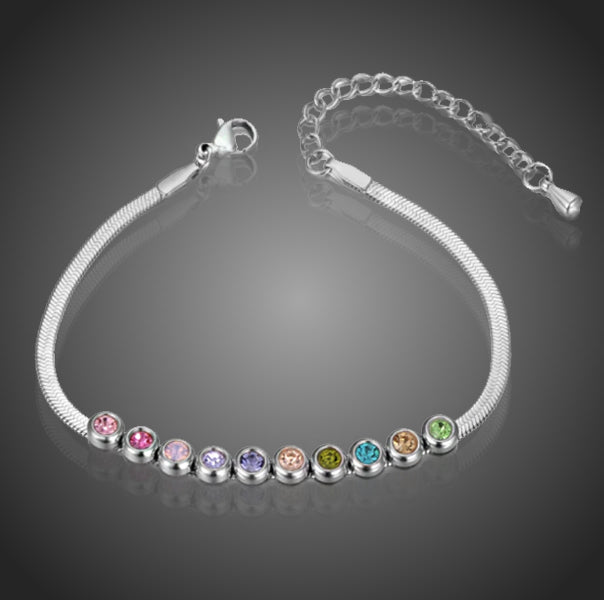 Veselý dámsky náramok z chirurgickej ocele so žiarivými farebnými krištáľmi.Zachováva si dlhotrvajúci lesk a jas. Antialergické.