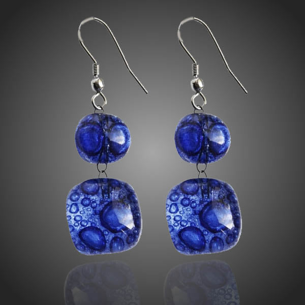 Nádherné originálne náušnice v modrom prevedení s unikátnym bublinkovým dizajnom odolného skla v ladnom tvare. Antialergické. Vhodný na bežné nosenie aj na spoločenské udalosti.