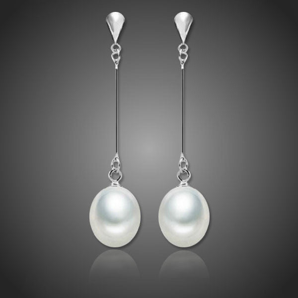 Dizajnové náušnice s bielymi oválnymi riečnymi perlami. Pôsobia vznešene a elegantne. Zachováva dlhotrvajúci lesk a jas. Antialergické.