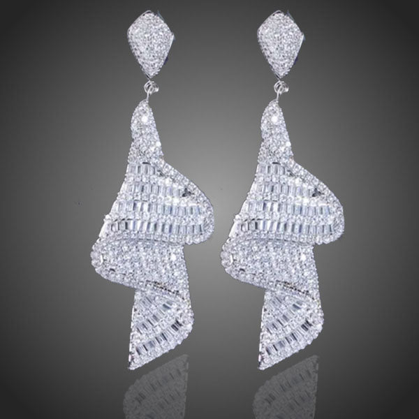 Visiace dámske náušnice v žiari stoviek čírych zirkónov v tvare nádherného vodopádu vyzdvihnú Váš celkový outfit. Vhodné ako spoločenské, či svadobné náušnice. Vďaka galvanizácii 3 vrstvou bieleho zlata si zachovávavjú dlhotrvajúci lesk a jas. Bez obsahu niklu, olova, kadmia. Antialergické.