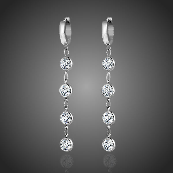 Krásne visiace dámske náušnice v ladnej zvonkohre s čírymi zirkónmi budú ladne lemovať Vašu tvár. Zachováva si dlhotrvajúci lesk a jas. Antialergické.