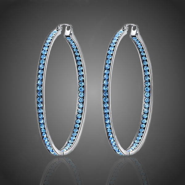 Obľúbené kruhové náušnice z chirurgickej ocele vykladané žiarivými modrými krištáľmi. Zachováva si dlhotrvajúci lesk a jas. Antialergické..