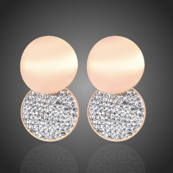 Zaujímavé náušnice v guľatom tvare, na spodku vykladané mnohými čírymi krištáľmi vyniknú na uškách. Zachováva si dlhotrvajúci lesk a jas. Antialergické.