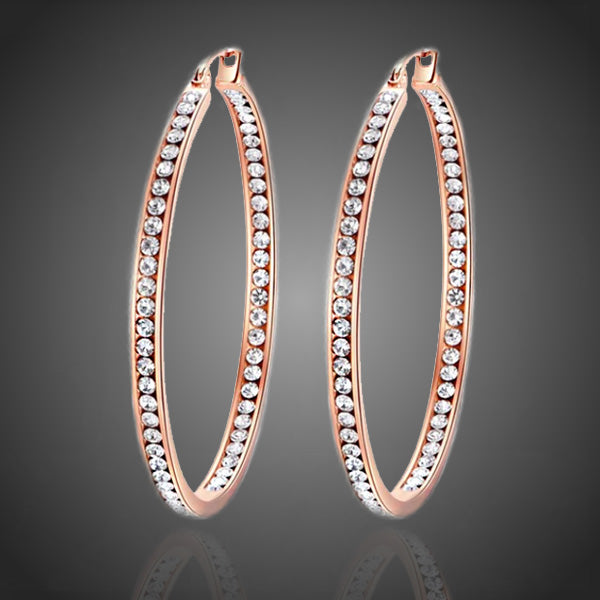 Obľúbené kruhové náušnice z chirurgickej ocele vykladané žiarivými čírymi krištáľmi. Zachováva si dlhotrvajúci lesk a jas. Antialergické.