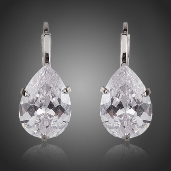 Kvapkové náušnice s čírymi zirkónmi. Zachováva si dlhotrvajúci lesk a jas. Bez obsahu niklu, olova, kadmia. Antialergické.