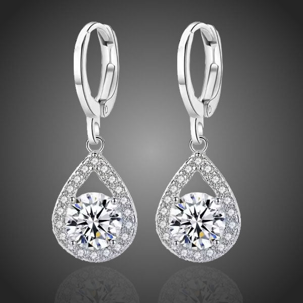 Visiace jemné náušnice s čírymi zirkónmi obkolesené drobnýmu čírymi zirkónmi Vás rozžiaria. Zachováva si dlhotrvajúci lesk a jas. Vďaka galvanizácii 3 vrstvou bieleho zlata si zachovávajú dlhotrvajúci lesk a jas. Bez obsahu niklu, olova, kadmia. Antialergické.