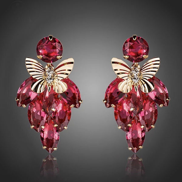 Štýlové náušnice s červenými zirkónmi s akcentom motýlika zvýraznia Vašu jemnosť a krásu. Zachovávajú si dlhotrvajúci lesk a jas.