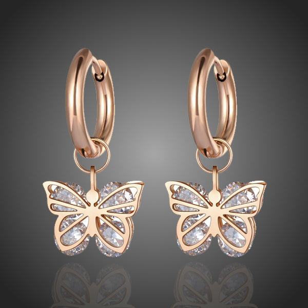 Jemné náušnice s motýlikmi vykladané čírymi krištáľmi sa stanú Vašim milým doplnkom. Zachováva si dlhotrvajúci lesk a jas. Antialergické.