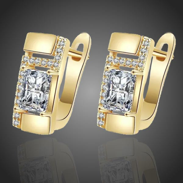 Obľúbené dámske oblžnikové náušnice vykladané žiarivými čírymi zirkónmi. Zachovávajú si dlhotrvajúci lesk a jas. Bez obsahu niklu, olova, kadmia. Antialergické.