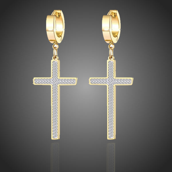 Moderné visiace náušnice s krížikmi vykladané čírymi krištáľmi sa stanú neprehliadnuteľným doplnkom. Zachováva si dlhotrvajúci lesk a jas. Antialergické.