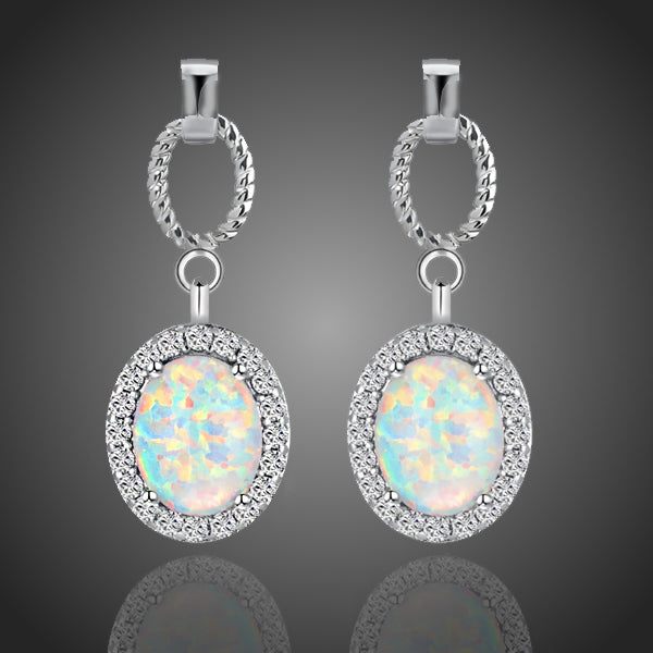 Visiace oválne náušnice s mliečnym žiarivým opálom na Vás zažiaria. Vďaka kvalitnej galvanizácii si zachováva dlhotrvajúci lesk a jas. Bez obsahu niklu, olova, kadmia. Antialergické.