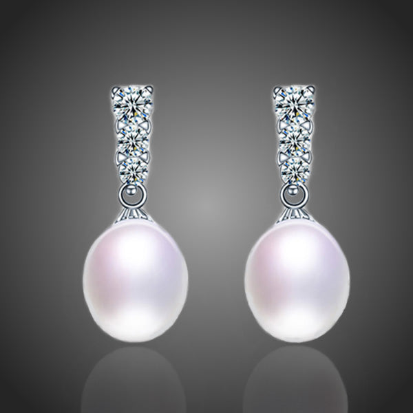 Krásne visiace náušnice s bielymi riečnymi perlami doplnené čírymi zirkónmi. Vďaka galvanizácii platinou si zachováva dlhotrvajúci lesk a jas. Bez obsahu niklu, olova, kadmia. Antialergické.