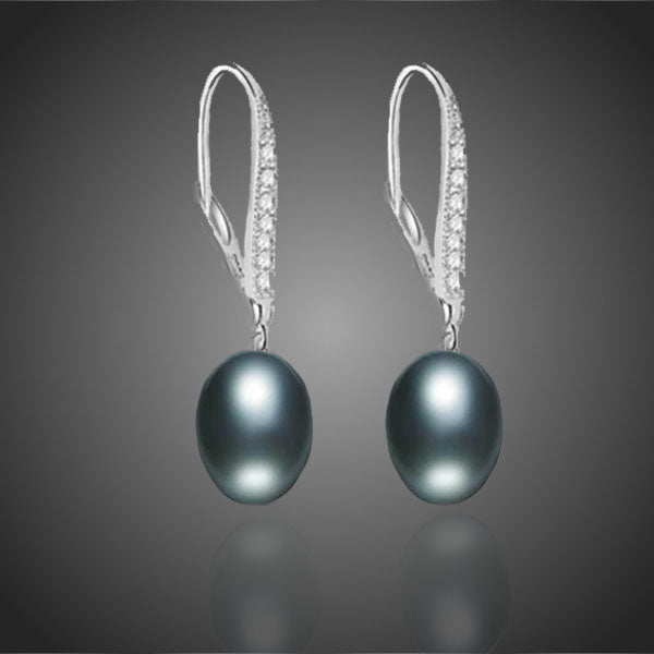 Elegantné visiace náušnice s čiernymi riečnymi perlami v kombinácii s čírymi zirkónmi podčiarknu Vašu jemnosť a krásu. Zachováva dlhotrvajúci lesk a jas. Antialergické.